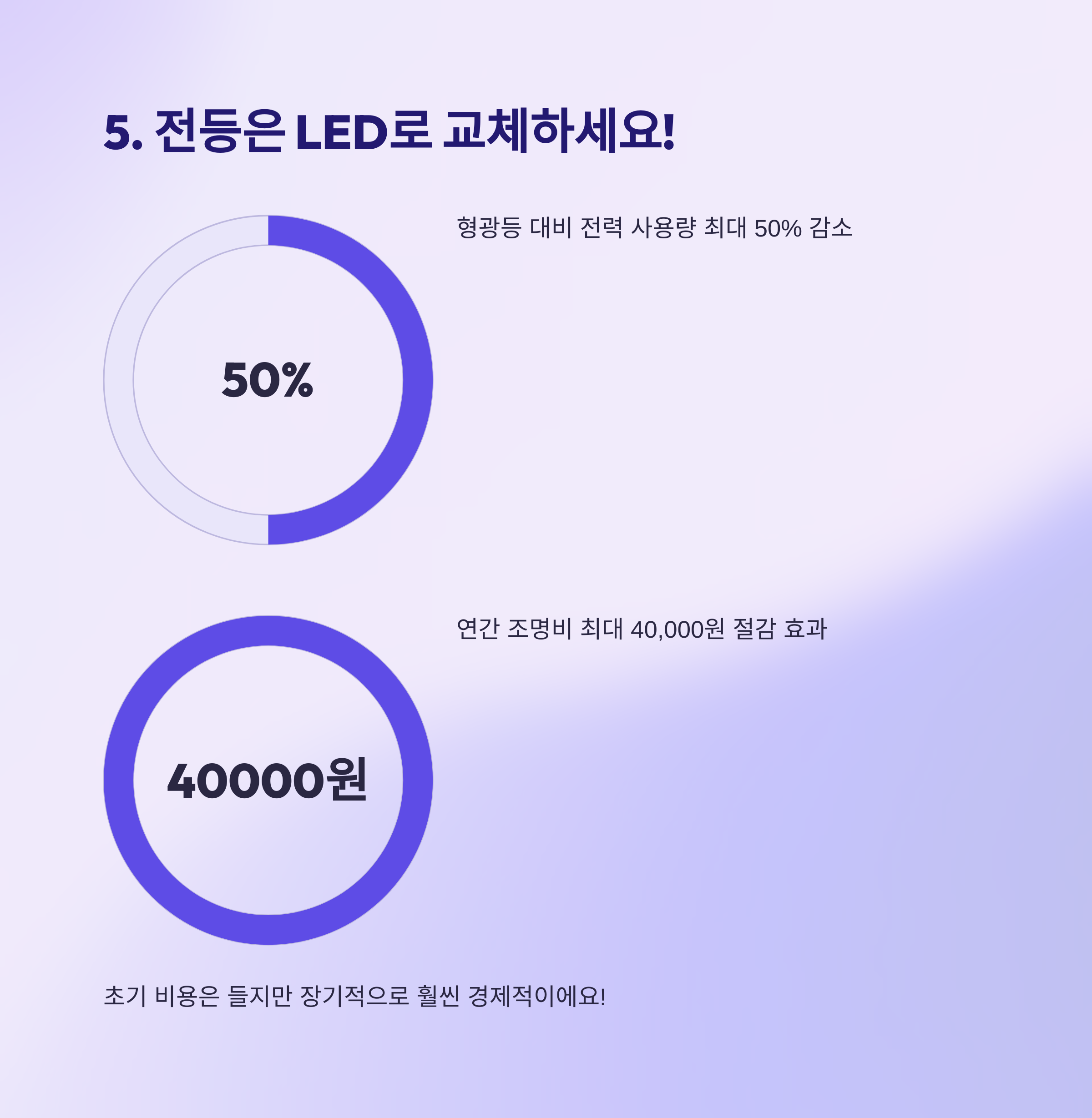 생각보다 큽니다. 전력 소모가 1/3 수준이고 수명도 길어서 장기적으로 이득이에요.